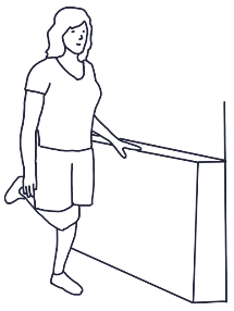 1C – Tezgâh veya masa gibi bir yerin yanında ayakta durun. Destek alma ihtiyacınız olursa elinizi masaya koyabilirsiniz. Ayaklarınızı; bir ayağınızın parmakları, diğerinin yarısı hizasına gelecek şekilde ve bitişik olarak yerleştirin. Bu pozisyonu 30 saniye koruyun. Hareketi 3 kez tekrar edin.