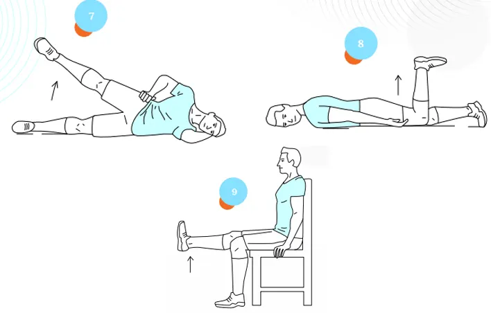 • 7. Yan yatış pozisyonunda bacağınızı yukarı doğru kaldırın. 5’e kadar sayıp gevşeyin.