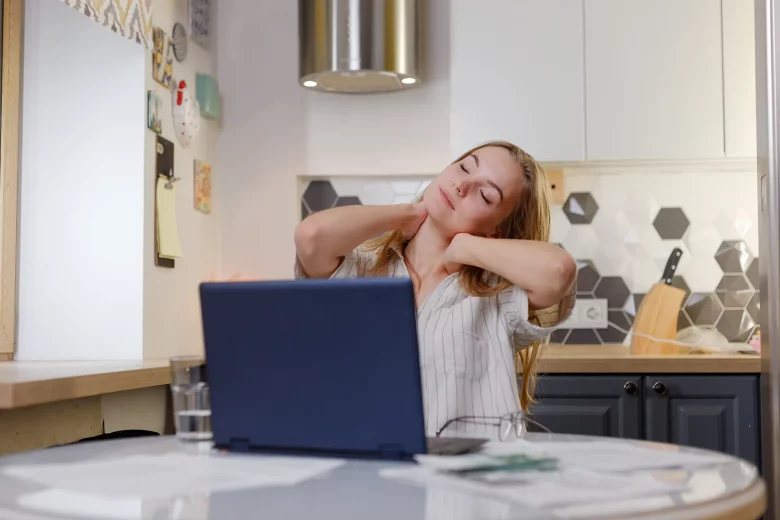 1 – Başınızı omzunuza doğru eğin ve elinizin yardımı ile boyun kaslarınızı esnetin. Bu pozisyonda 10 saniye bekleyin ve ardından gevşeyin.